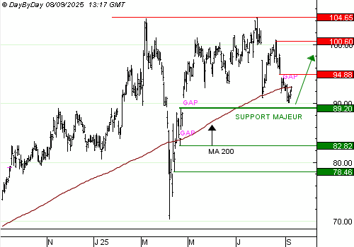 La rupture de la zone de support autour de 89,2 euros invaliderait ces perspectives de rebond.