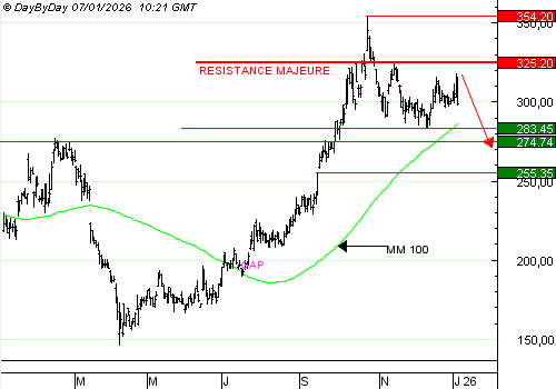 Le franchissement de la résistance à 325,2 euros invaliderait ce développement baissier à court terme.
