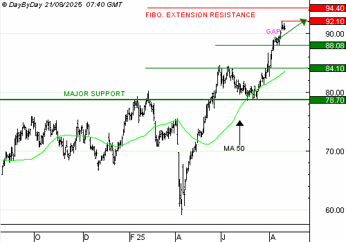 Unibail consolide à plat depuis quatre jours au-dessus d'un gap haussier. Les indicateurs sont dans l'ensemble surachetés, nous préférons solder cette position.