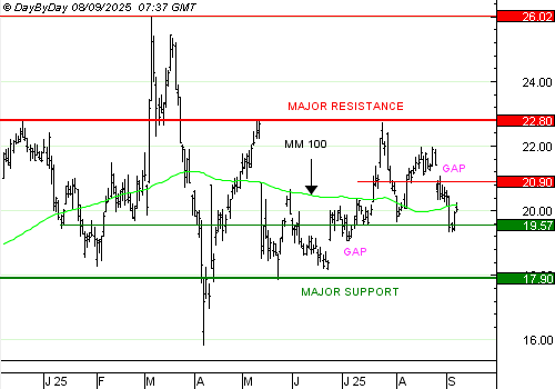 Alstom évolue toujours dans sa vaste phase de consolidation, avec surtout de la volatilité et peu de tendance soutenue. Elle a rejoint notre deuxième support il y a quelques jours et tente de rebondir. Nous clôturons cette position baissière.