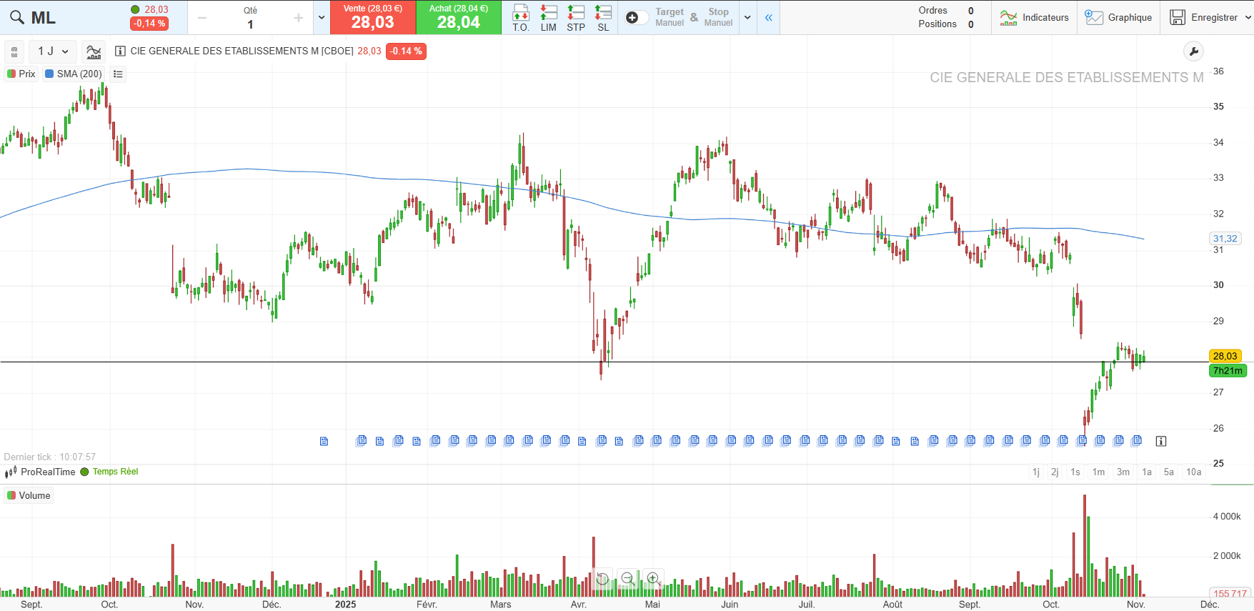 ENTREE : Achat Call Michelin MJ5RQG, le 05/11/2025.
