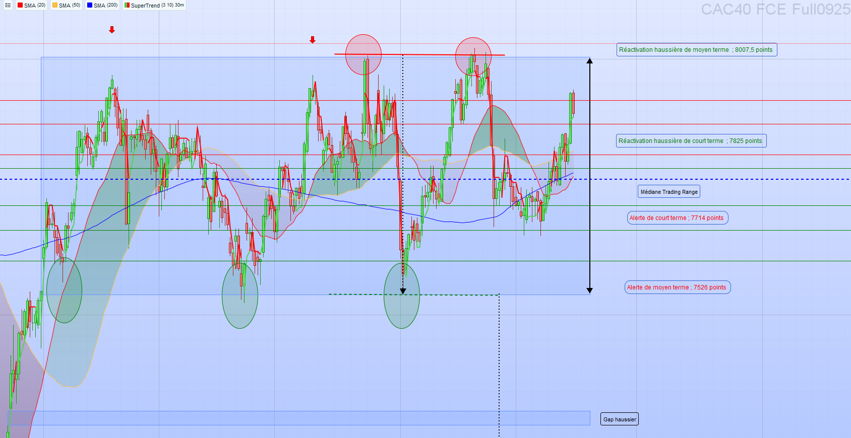 En intraday, la tendance est haussière au-dessus de 7888 points.
