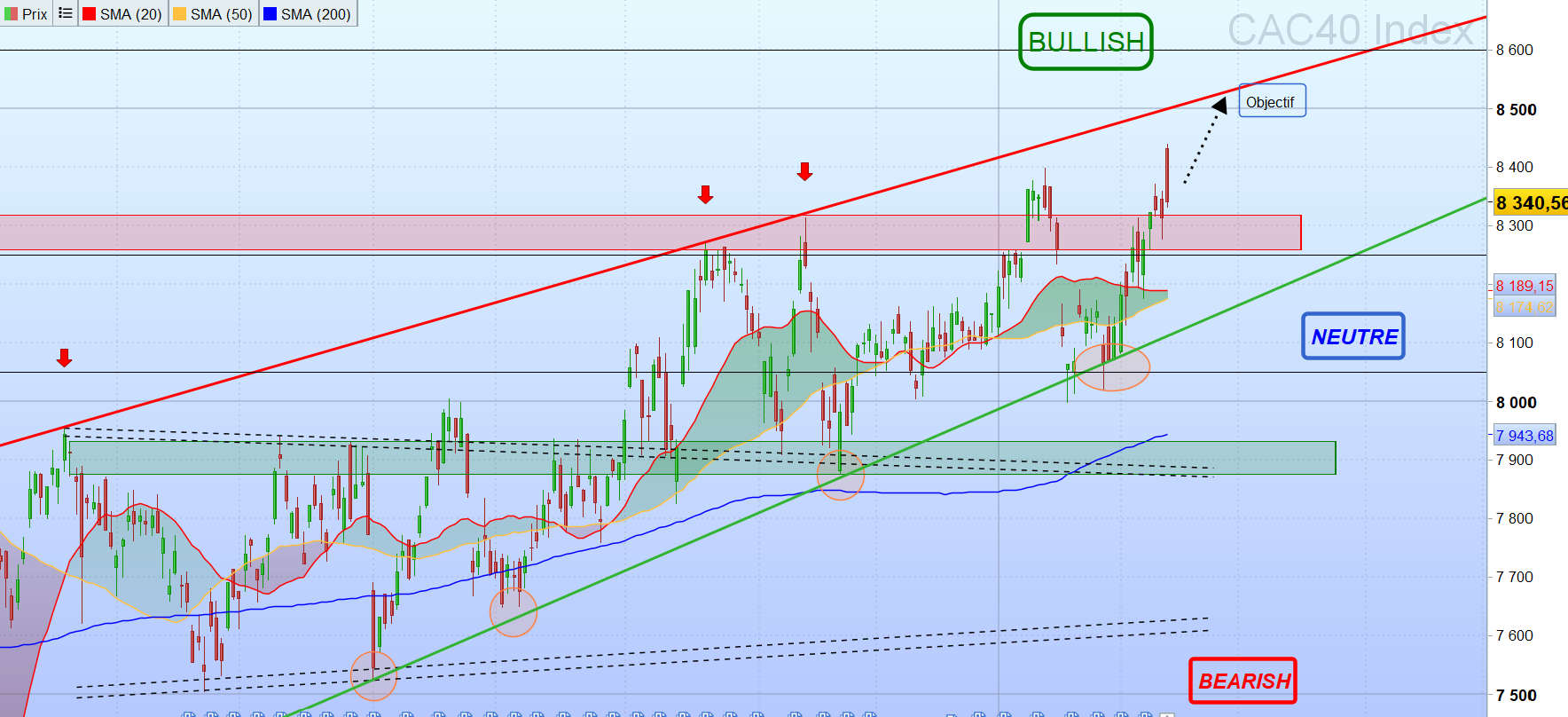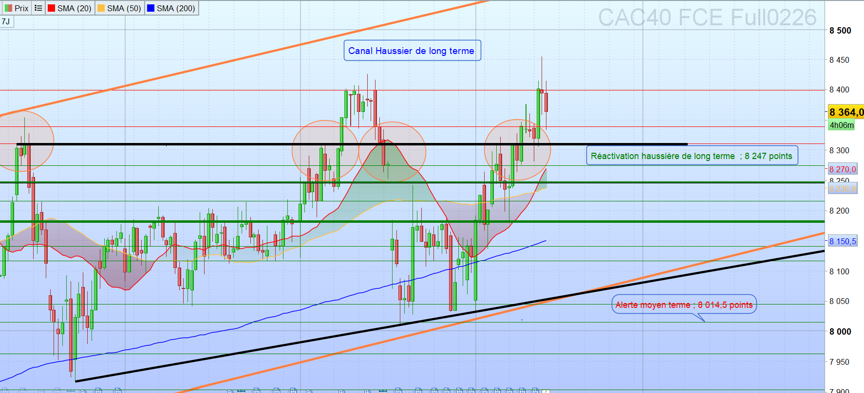 Les supports sont : 8 274,5 puis 8 247 voire 8 216 et 8 182 puis 8 116 voire 8 045,5 et 8 014,5 puis 7 963 voire 7 904.