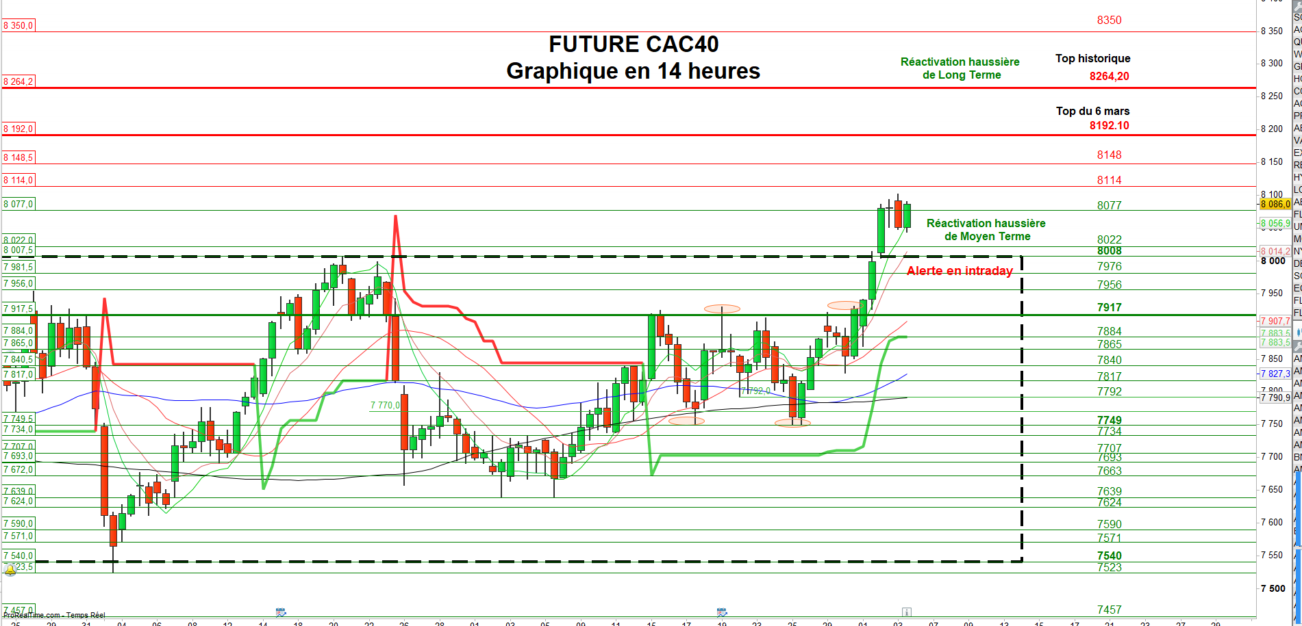 En intraday, la tendance est haussière au-dessus de 8032 points.