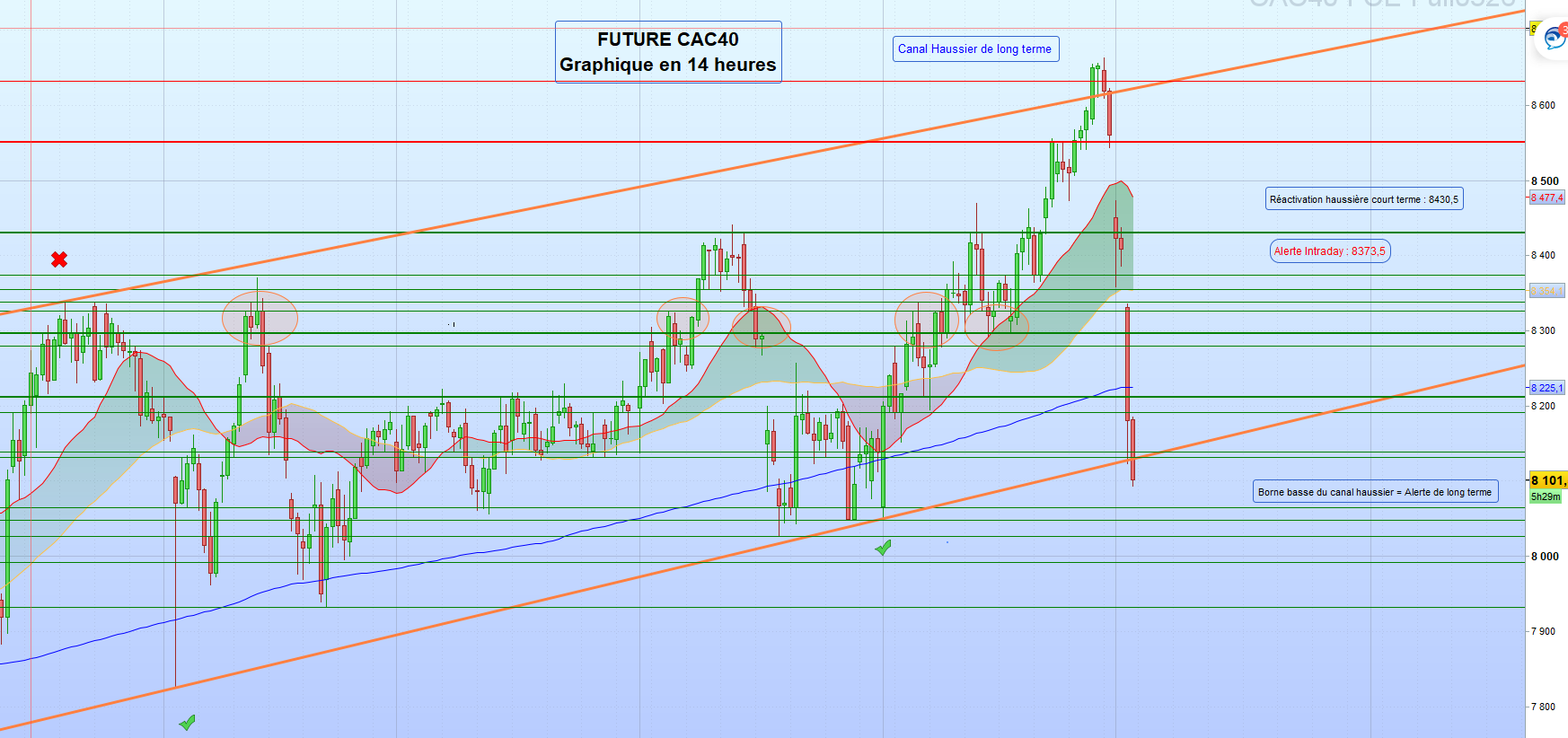 Les supports sont : 8430,5 puis 8373,5 voire 8355 et 8338 puis 8326 voire 8279,5 et 8212 puis 8191,5 voire 8139 puis 8131 et 8065 puis 8048 voire 8026 et 7991,5