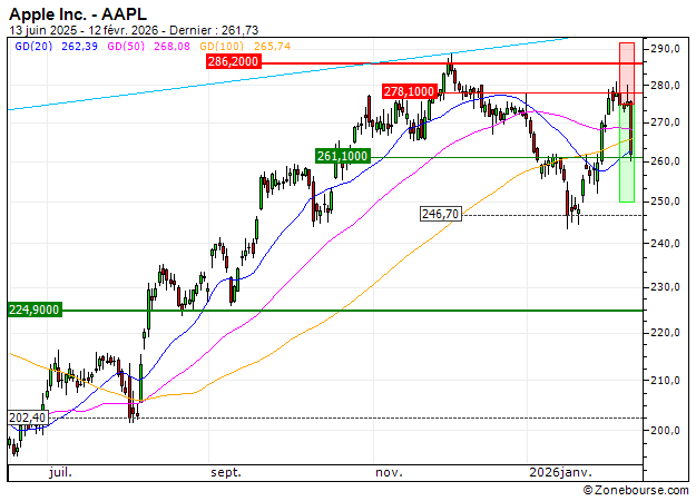 Apple Inc. : Sortie du warrant PUT Vontobel SL20V sur Apple (+35.54%) (SL20V)