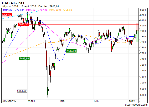 Instabilité politique, dégradation de la note de la France, le CAC40 a néanmoins fortement rebondi ces dernières séances, soutenu notamment par les records américains et la perspective d'une baisse de taux de la Fed.