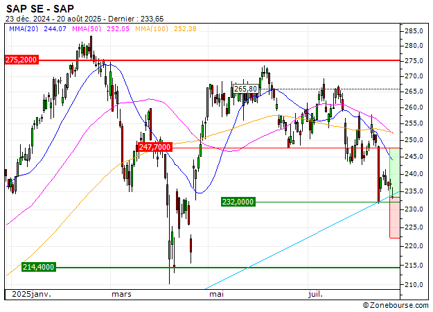 Le seuil des 232 EUR pourrait, en effet, permettre une remobilisation du consensus acheteur et engendrer une reprise technique en direction des 247.75 EUR.
