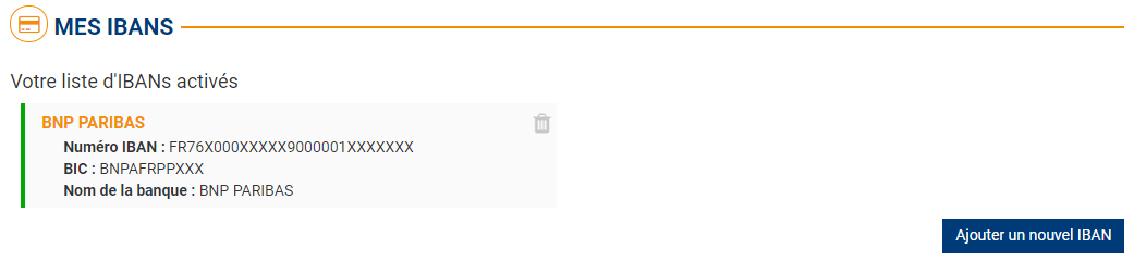 Par défaut, le RIB que vous nous avez transmis à l’ouverture de votre compte est enregistré.